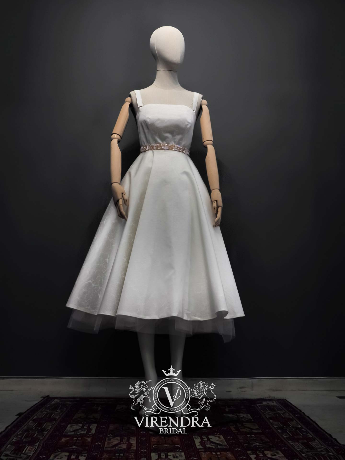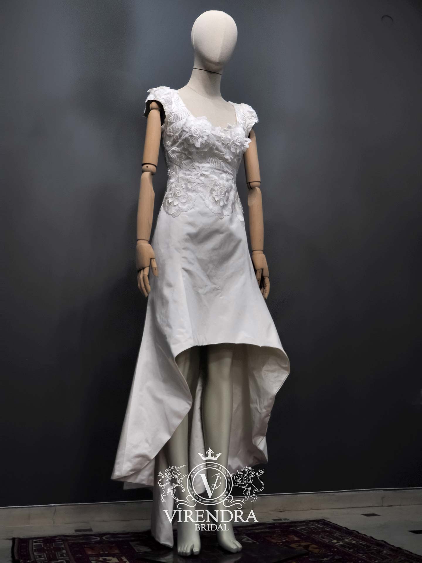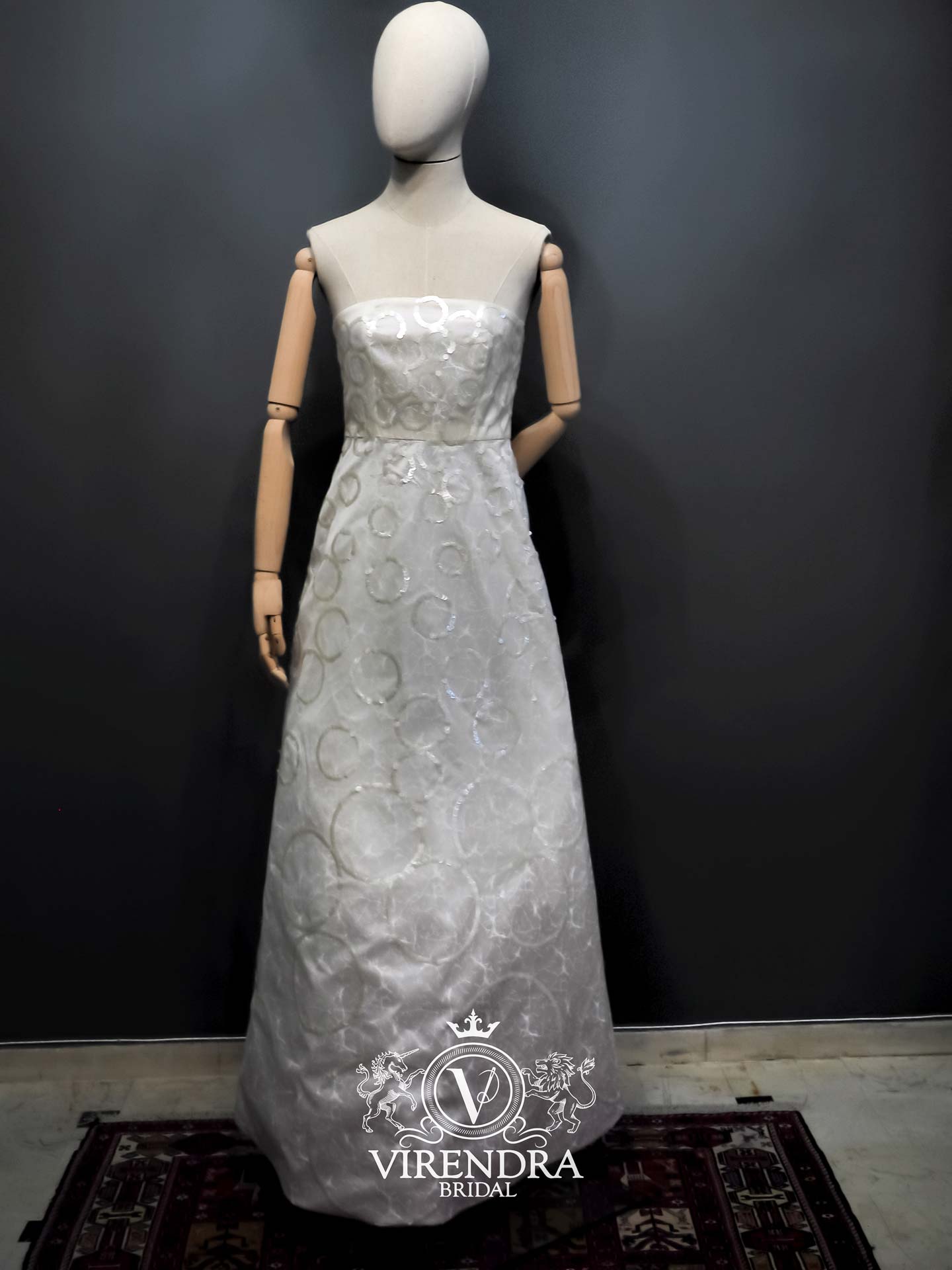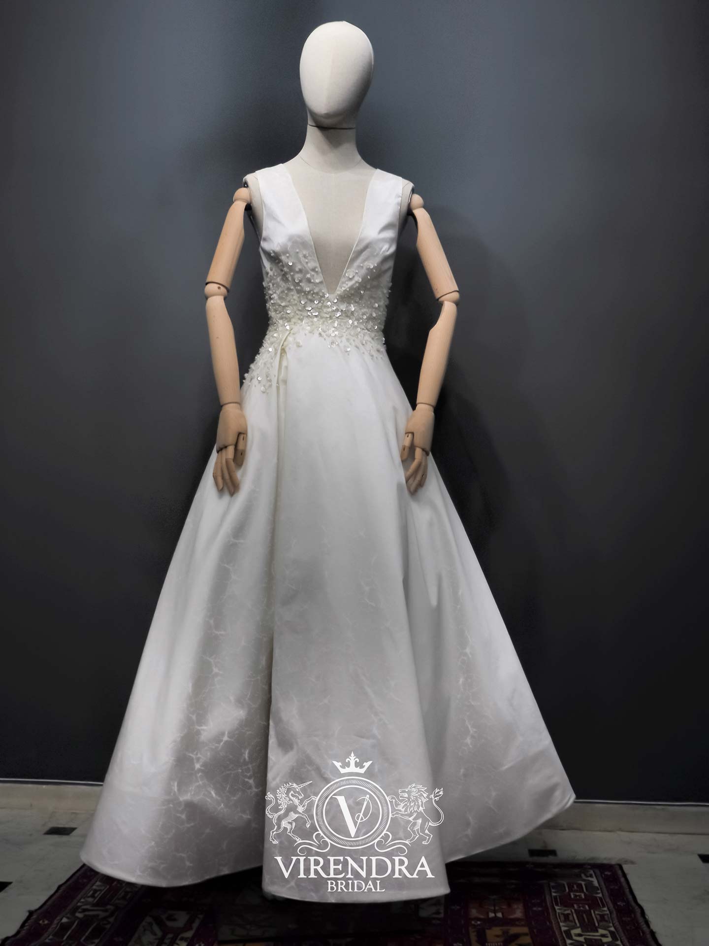 This is our first collection. The collection consists of eight different gowns. The basic conceptof this collection is to introduce brand Virendra to the public, through different artistic styles, couture technics and high quality fabrics. Silk and paillettes, pearls and crystals complete the Pilot Collection.
